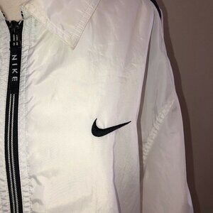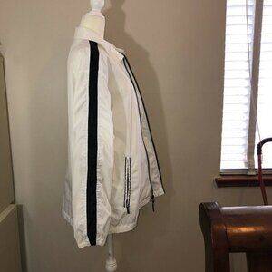 Vintage NIKE Mens White Black Stripes Full Zipper Windbreaker Jacket Sz M