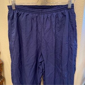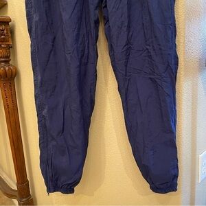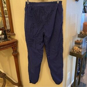 Pre-owned in great condition with no rips or stains. Vintage Nike navy windbreaker pants. Has lining inside. Can be unisex. Comes from smoke and pet free home.