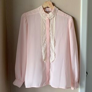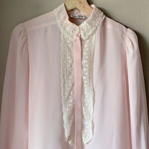 Vintage NILANI Pale Pink Lacr Trim Sheer Blouse