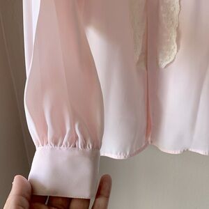 Description: Vintage Nilani Pale Pink Lacr Trim Sheer Blouse