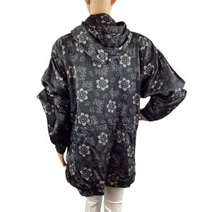 Design Features: This vintage NILS ski jacket is a retro-inspired, functional winter piece made from 100% nylon for durability and water resistance. It features a full-zip front, padded shoulders for structure, and a hood for added warmth. The bold black floral print adds a unique, eye-catching touch, making it perfect for both ski wear and vintage street style.