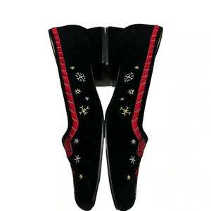 Vintage NINA 80's Black velvet embroidered holiday novelty flats