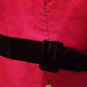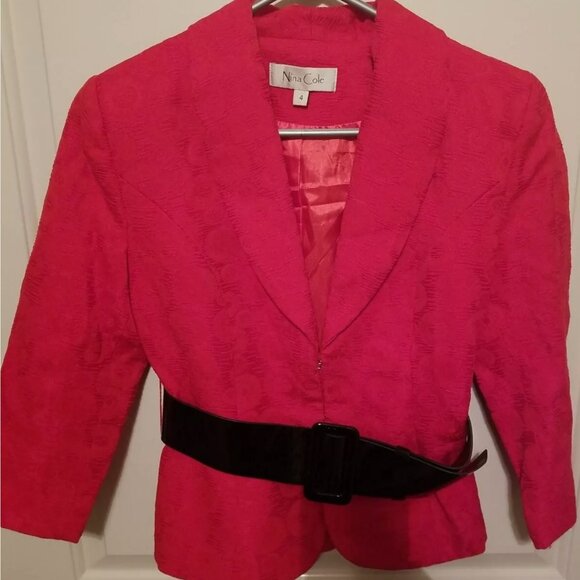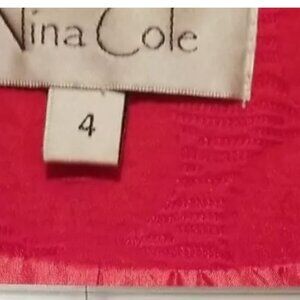 Vintage NINA COLE size 4 RED 2-piece suit SKIRT/JACKET with Shoulder Pads/Belt is in good condition.