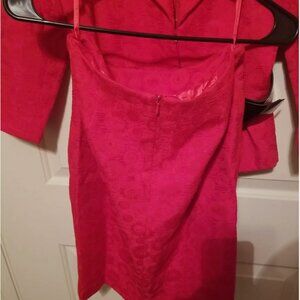 Vintage NINA COLE size 4 RED 2-piece suit SKIRT/JACKET with Shoulder Pads/Belt