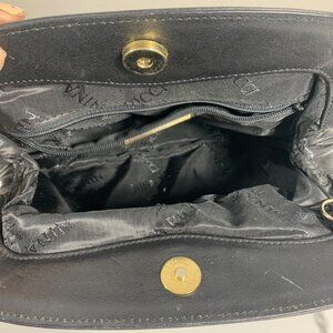 Vintage NINA RICCI Black Leather Ruched Clutch Handbag Gold-Tone Chain Strap