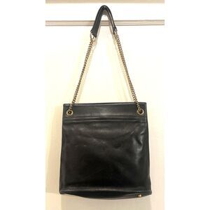 Vintage NINA RICCI Black Leather Shoulder Tote Handbag Bag Women's Size Medium