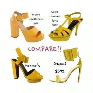 West strappy platform sandals. Neon patent leather upper. Funky oversized metal buckles, grommets and prongs. A few tiny dings on the grommets do not detract from the fabulous shoes. Light wear on soles otherwise in amazing condition! Size 8. No box.