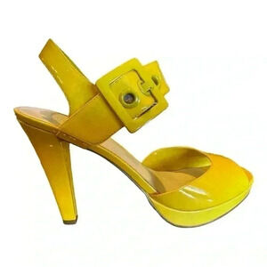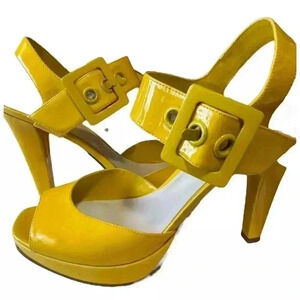 Vintage NINE WEST NW Front Time neon yellow strappy buckle platform size 8