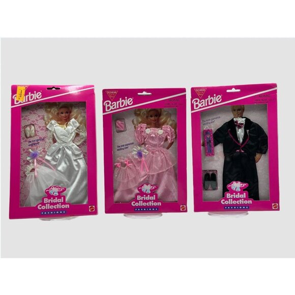 Vintage 1995 Mattel Barbie Bridal Collection Fashions – Lot of 3 OutfitsNIP • NRFB • Bride • Bridesmaid • Groom/Best Man • Pink Box Era