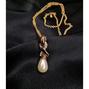 Vintage NOLAN MILLER Signed Gold-Tone Necklace With Faux Pearl Drop Pendant