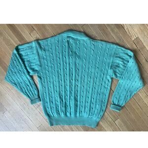 Vintage NORSPORT Sage Green V-Neck Cable Knit 100% Cotton Sweater Size XXL