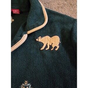 The Vintage NORTHCREST Women's 18/16W XL Fleece Holiday Jacket in Green is a stylish and cozy option for the holiday season. Made from polyester fleece, this mid-length jacket features a collared neckline, button closure, and long sleeves. The jacket is designed with a retro vibe in mind, with accents like buttons and a logo evoking a sense of nostalgia. With its breathable and lightweight construction, this jacket is perfect for all seasons and occasions, whether it be for work, a party, or a casual outing. The nature-inspired theme adds a touch of whimsy to this limited edition piece that is sure to stand out in any wardrobe.