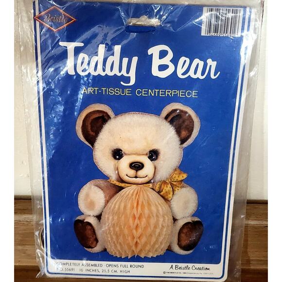 Vintage NOS 1986 Honeycomb Teddy Bear Centerpiece Beistle Tissue 10" USA