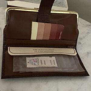 Rare Find! Buxton Much Clutch triple frame wallet card organizer, kiss lock coin compartment, in original box with original tags. Best part is the lovely gold tone buckle detail that fives old money classic equestrian vibes.