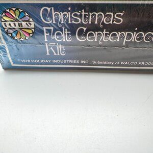This unopened vintage craft kit includes all necessary materials to create a festive felt centerpiece featuring caroling figures. Ideal for decorative holiday projects.