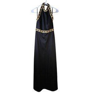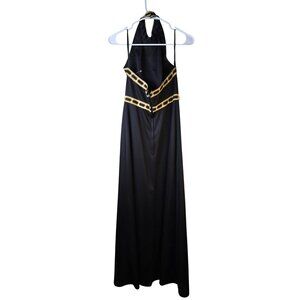Vintage NOS Nadine 60s 70s Black Halter Maxi With Gold Chain Trim Cleopatra S