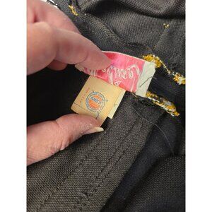 Back zipper has minor wear; waist = 14 inches flat across; full length = approx. 56 inches.
