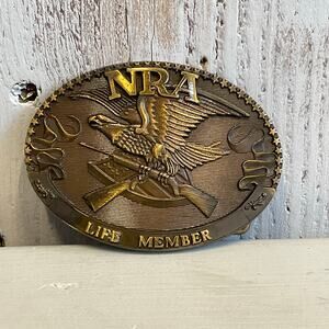 Vintage NRA 1985 Belt Buckle Life Member Solid Brass Norman Foundry USA