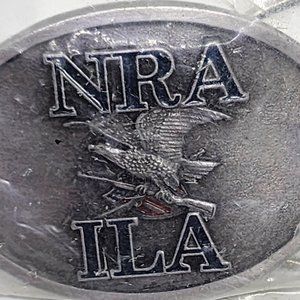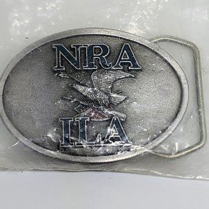 Vintage NRA ILA Eagle Holding Rifle New In Sealed Pack Enamel Pewter Belt Buckle
