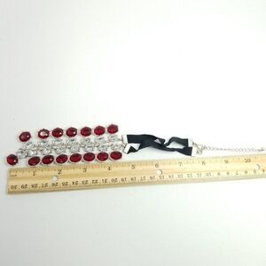 Vintage NRT Red Rhinestone Choker Collar Necklace, Adjustable, Chunky Statement