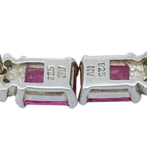 Description: These elegant stud earrings feature vibrant rectangular-cut pink topaz stones accented by sparkling cubic zirconia. Set in sterling silver, they offer a perfect pop of color and sparkle for both everyday wear and special occasions.