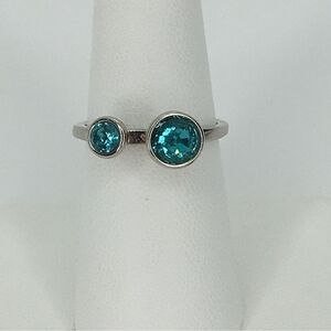 Vintage NVC Silver Double Stone Teal Ring Mother Child