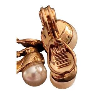Vintage NWH Clip On Earrings Gold Tone & Faux Pearl