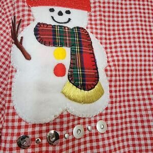 Vintage NWOT LasOlas gingham check snowman applique long sleeve button up shirt