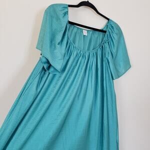Vintage NWOT Nylon Flowy Nightgown Teal Short Flutter Sleeves Boat Neck Medium