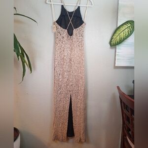 Vintage NWT Alchemy Shimmery Knit Overlay Lurex Gold Disco Crossback Maxi Dress