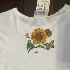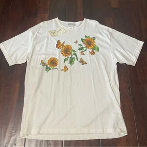 Vintage NWT Basic Editions Sunflowers Butterflies Shirt Women’s XL Made In USA