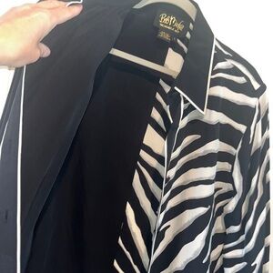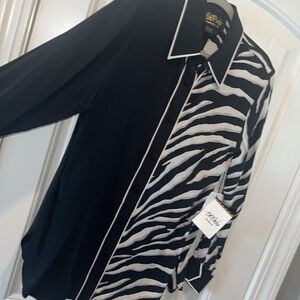 Vintage NWT Bob Mackie wearable art silk blouse zebra/black button down size S