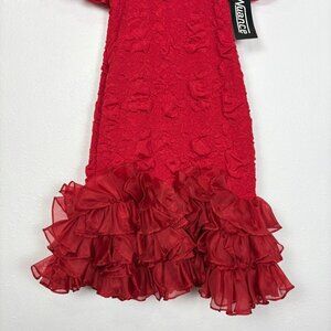 Vintage NWT Deadstock Red 80's Ruffle Sleeve Bodycon Mini Dress Size: 13
