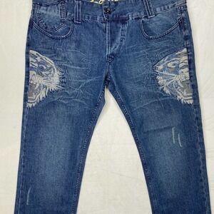 NWT Ed Hardy Tiger Death or Glory Rhinestone Relaxed Fit Jeans-42x34