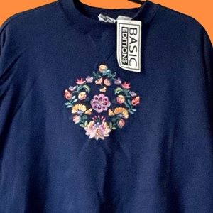Vintage NWT Embroidered Flower Sweatshirt, Basic Editions Brand, Size M, 60% Cotton, 40% Polyester. Great condition, no noted flaws,soft and comfy.