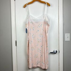 Vintage NWT Erika Taylor Intimates Pink Floral Slip Chemise Night Gown Cottage