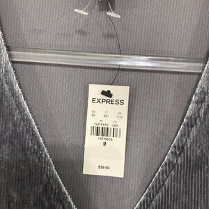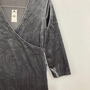 Vintage NWT Express Medium Gray Velvet Stretch Wrap Tie Back Fitted Top Y2K