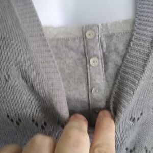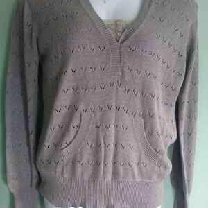 Vintage with tags Gitano hooded sweater set. Hooded sweater with pockets with matching tank top underneath. Tank has lase and button details. Gray open weave this sweater. Totally 80's! Size large.