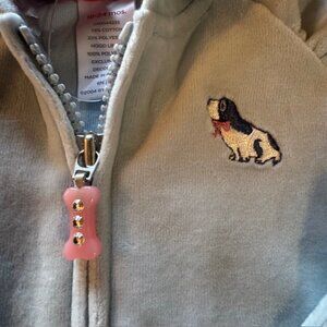 * Includes the light blue velour hooded sweatshirt/jacket with embroidered dog and pink bone shaped zipper pull along with the leggings with cute dogs throughout.