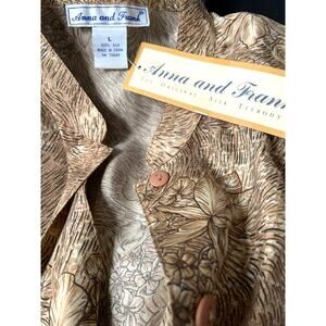 Anna and Frank The Original Silk Teebody Hawaiian Shirt Button Up Brown Short Sleeve Flower Tiger Print L