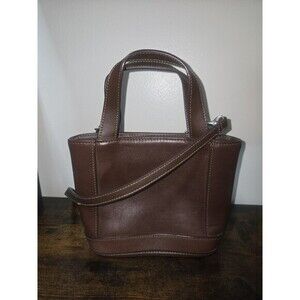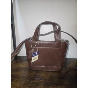 This vintage Hillard & Hanson cognac leather bucket crossbody bag is a stylish addition to any wardrobe. With a zip closure and brown leather handle/strap, this medium-sized bag is perfect for everyday use. The exterior color is cognac, and the bag features pockets for added convenience.