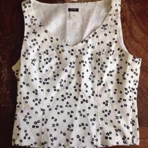 New With Tags J. Crew White Top with Black Flower Pattern Sleeveless Vneck Shirt