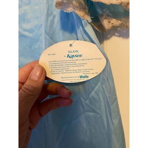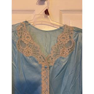 This is a NWT button down Kayser Light Blue Pajama Top with Lace Accents size Large