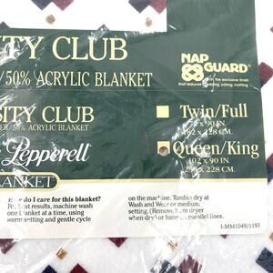 Vintage NWT Lady Pepperell Polyester Blend Queen 102”x90” Blanket Varsity Club