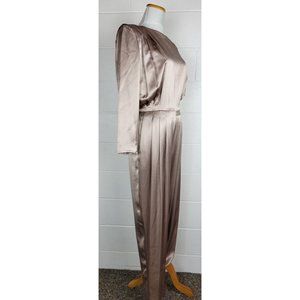 Vintage NWT Morgan Taylor Satin Champagne Taupe Open Back Jumpsuit Sz 8