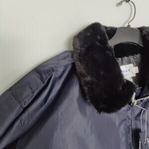 Vintage Galls police or security nylon jacket. Faux fur trim collar, quilted lining.