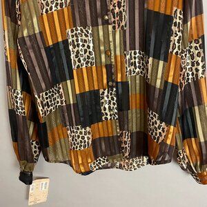 Vintage NWT Nordstrom Deadstock Top Animal Print Women Semi-Sheer Leopard Blouse
