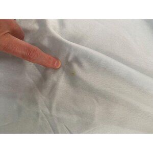PLEASE NOTE: There is a small spot from storage, as shown and a tear under the collar. The tear is not on the upper layer of the fabric. Unworn, unwashed.