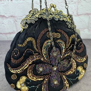 Vintage NWT Silk Beaded Embroidered Black Evening Framed Bag