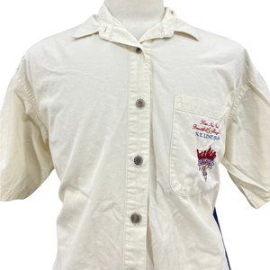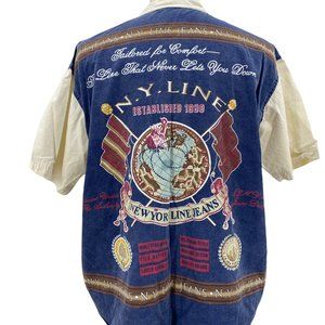 Vintage NY Line Men's Retro Graphic Button Down Beige Shirt Size Small 90's